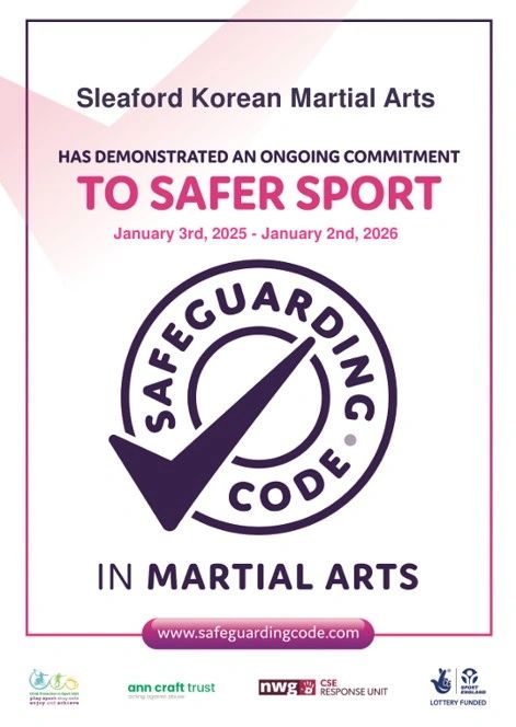 Sleaford Korean Martial Arts school has achieved the Safeguarding Code of Martial Arts. This is in recognition of the policies and procedures in place at the school to protect all students. Please see policies below for adult safeguarding, child safeguarding and safe practice.